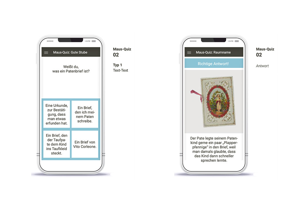 Jeder Raum hält ein Maus-Quiz für die ganze Familie bereit. Neben Quizfragen gibt auch Bilderrätsel, Puzzle und Drag-n-Drop-Spiele.